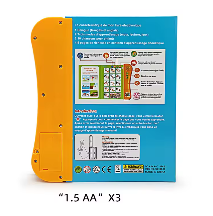 Make learning fun, interactive, and independent with this interactive educational book for children, specially designed for kids aged 3 years and above. This smart learning toy helps your child develop essential skills through songs, images, pronunciation, and interactive quizzes in both English and French.